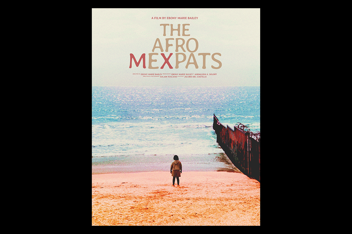 Bilingual poster for The AfroMexpats, a film focusing on the stories of three Black women who embody the Blaxit experience in Mexico, sponsored by Latino Publishing Broadcast and Third Root Media.